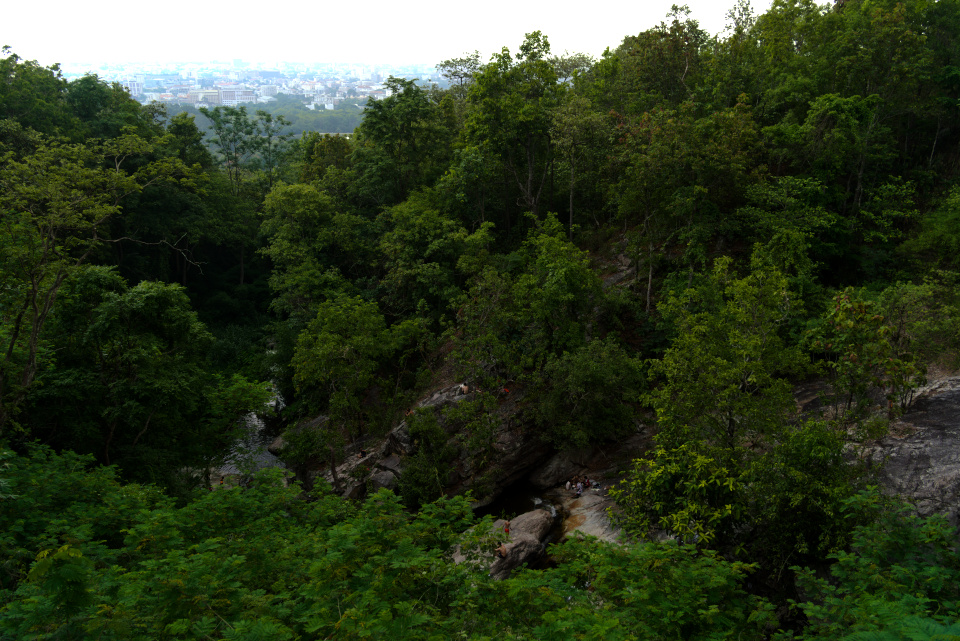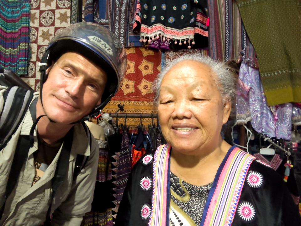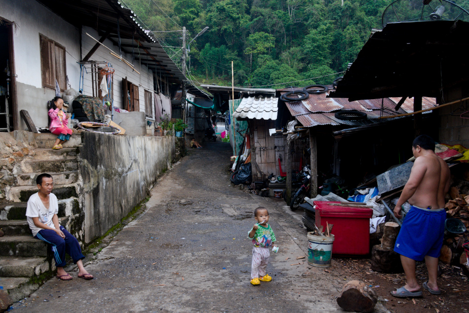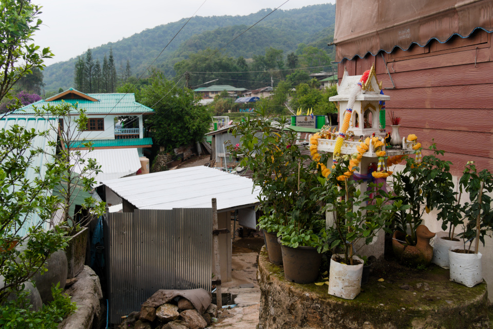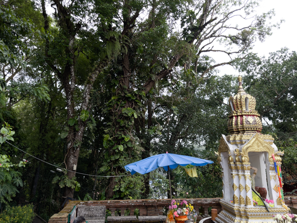 Ich komme an einem “Wasserfall” vorbei, wo sich die hippen jungen Leute aus Chiangmai ins Wasser setzen. Dort finde ich einen Weg, auf dem man ein paar hundert Meter in den Dschungel gehen kann. Dann fahre ich in ein Hmong-Dorf ganz oben auf dem Berg.
