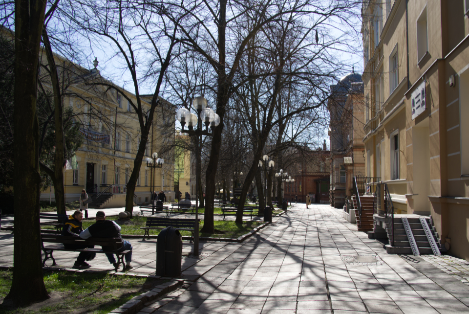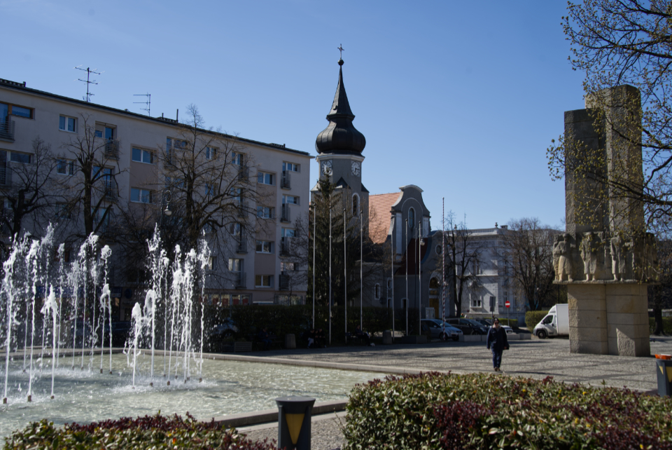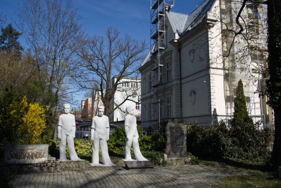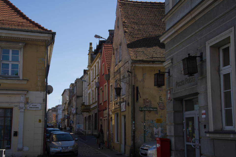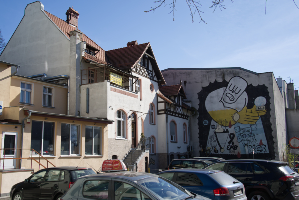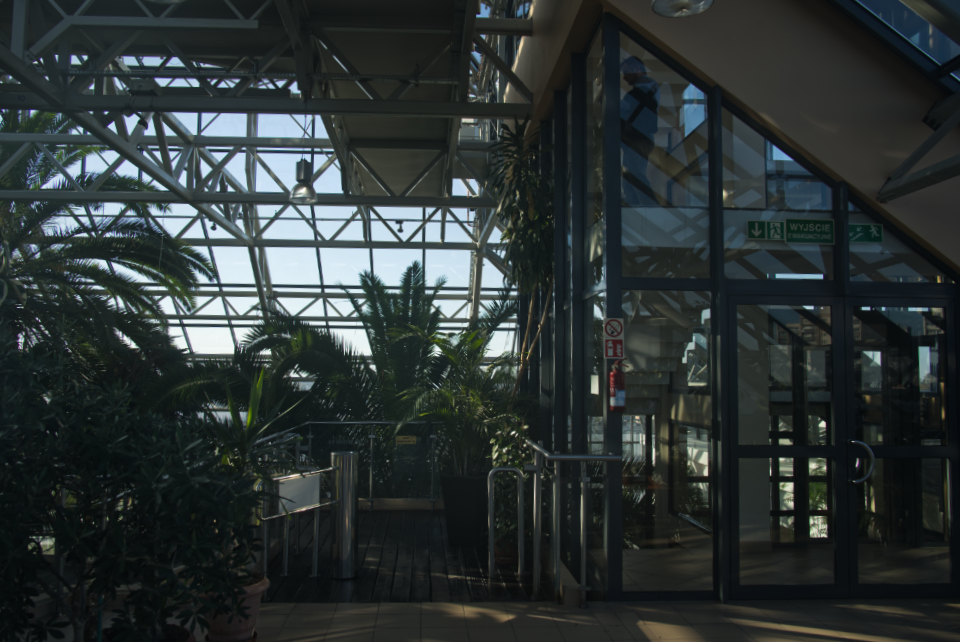 Wir machen eine Reise nach Jielona Gora. Am ersten Tag sind wir in der Stadt unterwegs. Ganz berühmt ist so ein ehemaliger Weinberg, auf dem jetzt ein Restaurant in einem Gewächshaus ist, oder so.