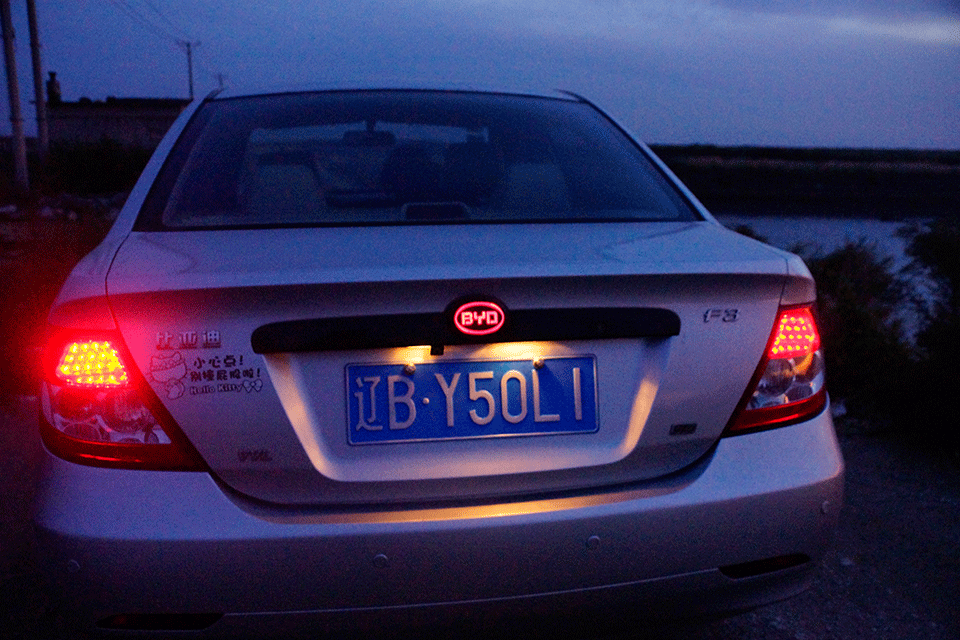 Es wurde immer später. Bei einem Stop fiel uns auf, dass dieses total billige chinesische Auto, das wir gerade für 2300 Euros gekauft hatten, einen echt tollen Gimmick hat. Wenn abends das Licht an ist, leuchtet hinten das Logo rot. Danach haben wir immer von hinten gesehen, welche anderen Autos von BYD noch unterwegs waren.
