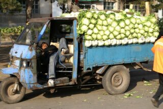 In jedem Herbst bringen die Bauern aus der Umgebung Salat und Gemüse nach Changchun. Sie fahren oft Stunden mit ihren Treckern in die Stadt.