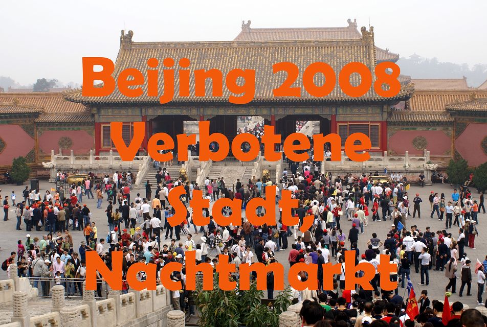 Nachdem 2005 meine Kamera mit Fotos von der verbotenen Stadt und den Hutongs gestohlen worden war, war ich 2008 mit meiner Frau bei einem Stoppover wieder in Beijing. Wir haben nur einen Tag. Die Luftqualität war sehr schlecht. Wir besuchen die verbotene Stadt, den danenbenliegenden Hutong und den Nachtmarkt.