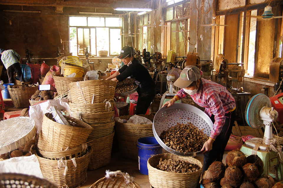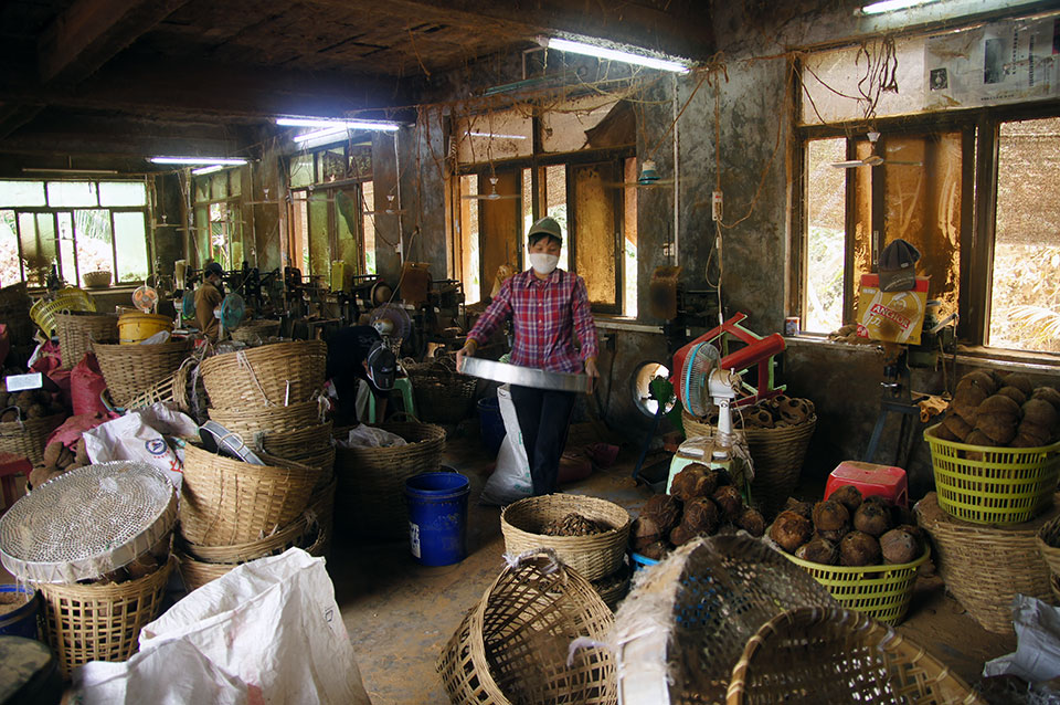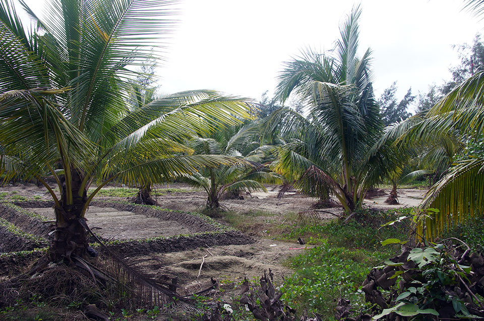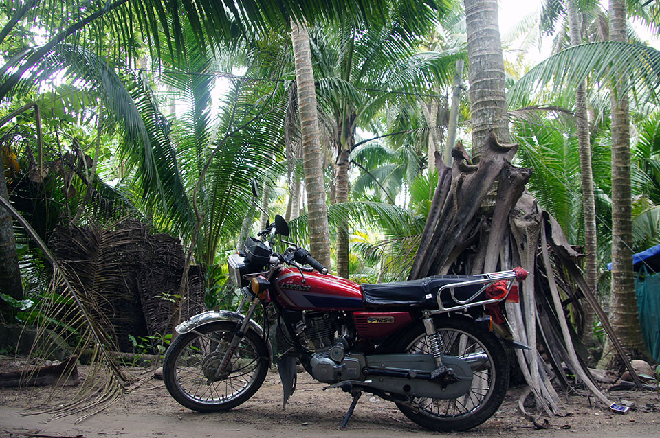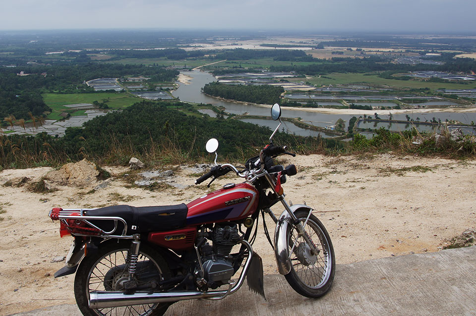 Mit einem öffentlichen Bus fahre ich nach Wenchang. Mit diesem Ort fühle ich mich besonders verbunden, da ich in Changchun in der Wenchang Lu, der Wencheng Straße wohne. Dort spreche ich Leute, die mit Motorrädern an der Straßenseite abhängen an, bis einer bereit ist, mir sein Motorrad für 100 Yuan am Tag für zwei Tage auszuleihen, eine 125er. Dazu bekomme ich eine tolle handgeschriebene Karte, nach der ich sehr erfolgreich ein paar sehr schöne Dörfer finde. Ich komme auch in eine Fabrik, in der man mit raffinierten Maschinen Kokusnussschalen verarbeitet. Ziemlich cool, aber leider auch ziemlich staubig.