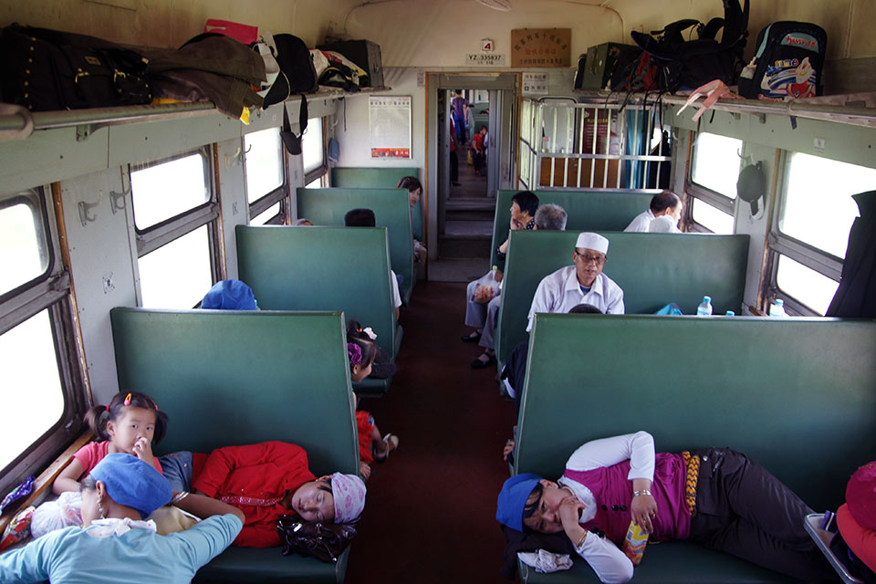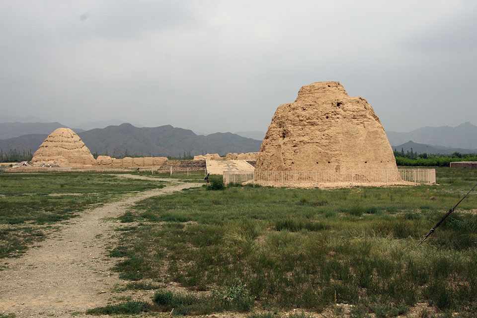 Dann nehmen wir ein Taxi und fahren zu den Western Xia Tombs. Dann, voll touristisch, zum Helan Shan mit den Twin Pagodas und diesen Rock-carvings. Am folgenden Tag machen wir eine Bootsfahrt auf dem gelben Fluss zu den buddhistischen 108 Dagobas. Unterwegs arrangieren wir mit Hilfe unseres Taxifahrers einen einsamen Kamelritt durch die Wüste.