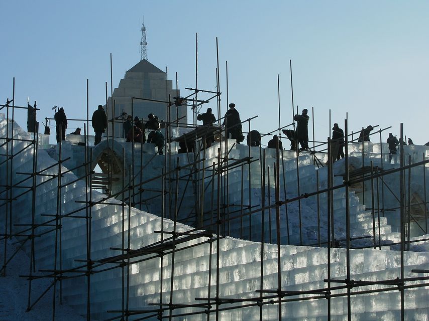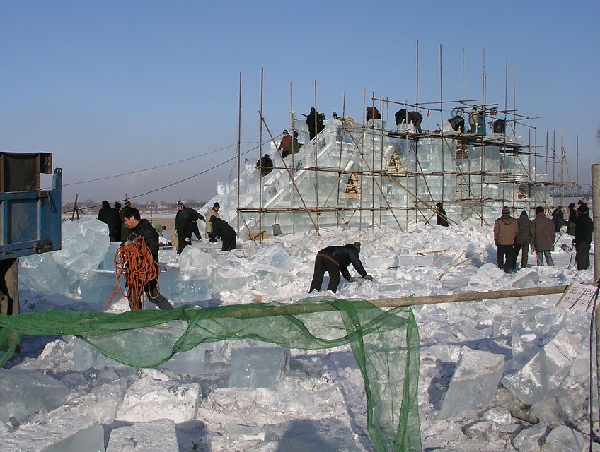 Der dritte Ausflug war im Dezember 2005 mit einem portugisischen Bekannten. Interessant war, dass wir sehen konnten, wie die Eiskunstwerke hergestellt wurden. Tausende von großen Eiswürfeln wurden aus dem Fluss geschnitten, um daraus die Kunstwerke herzustellen. Hunderte von Leuten waren an der Arbeit.