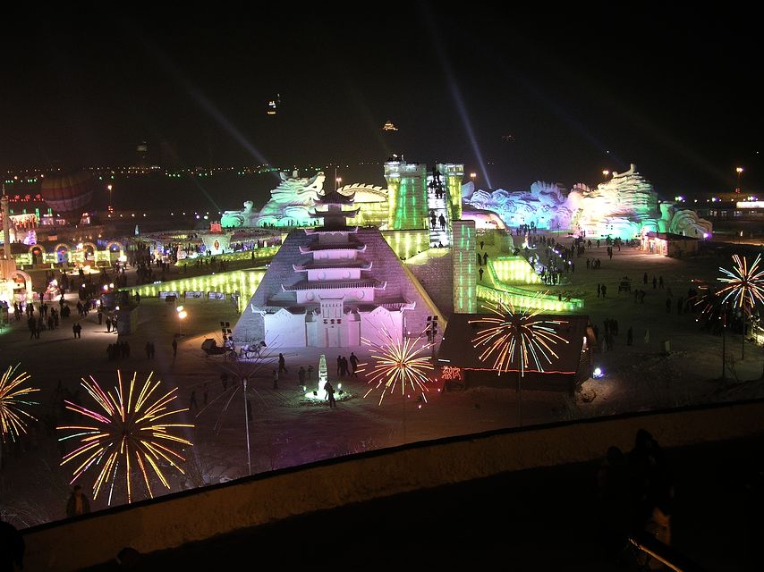 Mein zweiter Besuch war im Januar 2004, als mein französischer ehemaliger Kollege aus Korea zu Besuch kam und wir mit einer chinesischen Bekannten aus Changchun zum Bingdeng, zum Eisfestival fuhren. Schon damals war das Bingdeng eindrucksvoll, aber die Infrastruktur war noch nicht so gut. Bei minus 30 Grad kamen wir irgendwann mit letzter Kraft bei einer kleinen Plastikhütte an, wo es eine Heizung gab, an der wir uns ein bisschen aufwärmen konnten.