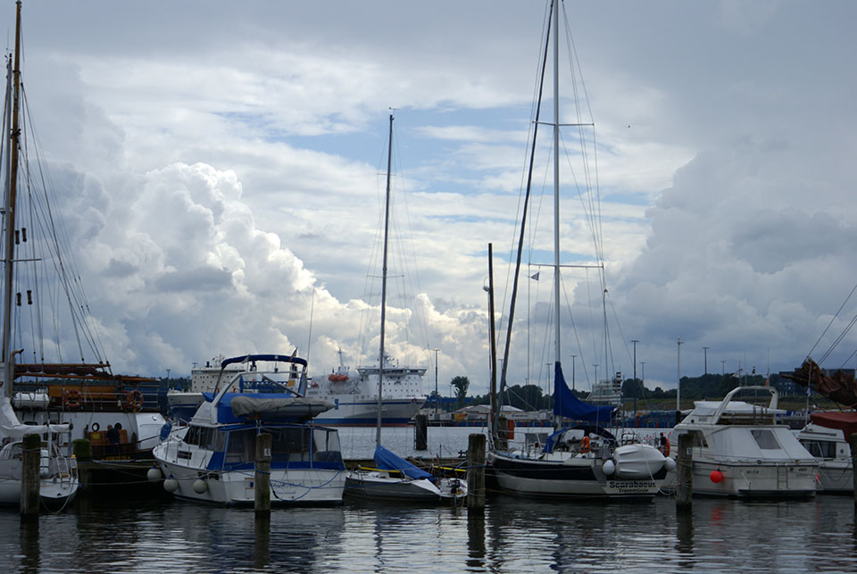Von Travemünde nehmen wir eine Fähre über die Trave und fahren weiter Richtung Polen.