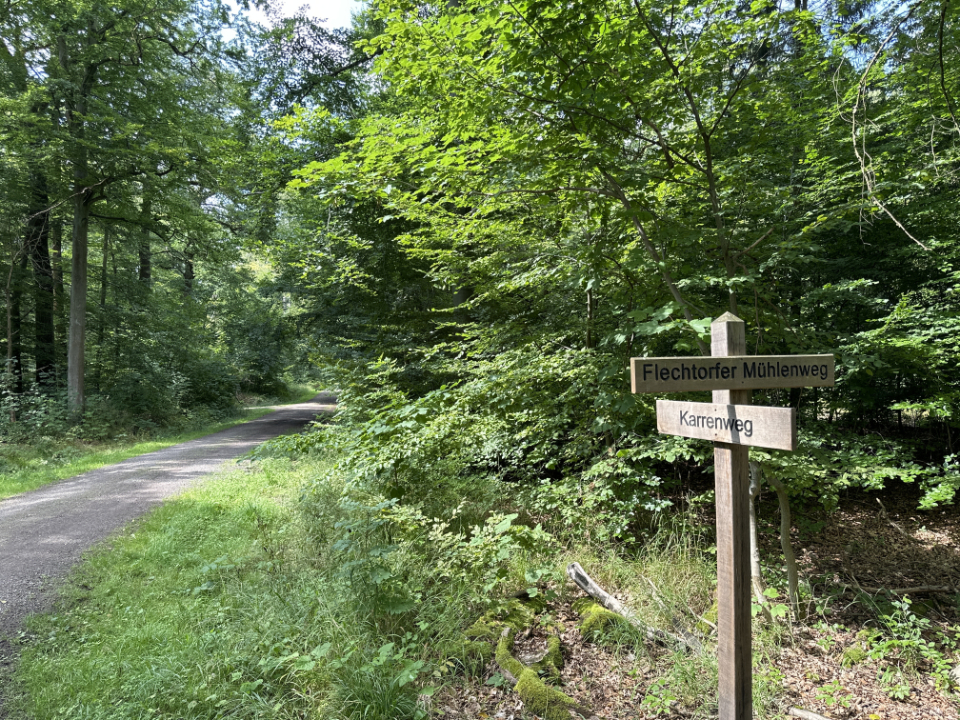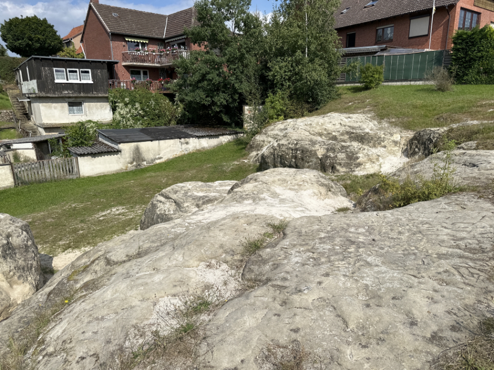 Ich fahre erst durch Ehmen und komme zur Talsperre zum Hochwasserschutz. Dann weiter ins Hohnstedter Holz, wo einige Wege zu zugewachsen und verschlammt waren, dass ich kaum durchgekommen bin. Dann bin ich an einem „historischen Grenzstein“ zwischen dem Herzogtum Braunschweig und dem Königreich Hannover vorbeigekommen. Dann nach Kleinbrunsrode und gleich weiter nach Essenrode, wo es eine interessante Felsformation gibt. Weiter durch die „Laubwälder zwischen Braunschweig und Wolfsburg“, wo ich am Weidensoolteich und am Otte-Teich vorbeigekommen bin. Südlich weiter durch den Wald nach Großbrunsrode und schließlich an Flechtorf vorbei zurück.