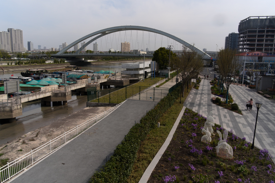 Aus dem Shanghai Dongjiang Sports Club stößt man direkt auf den Huangpu-Fluss. Das erste Mal bog ich recht ab und ging bis zur Mündung des Chuanyang-Flusses.