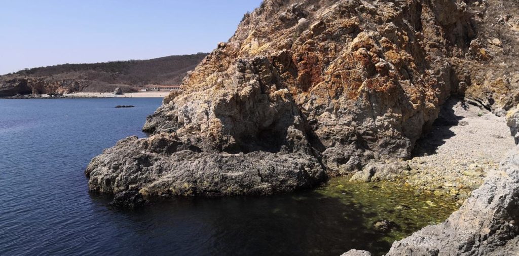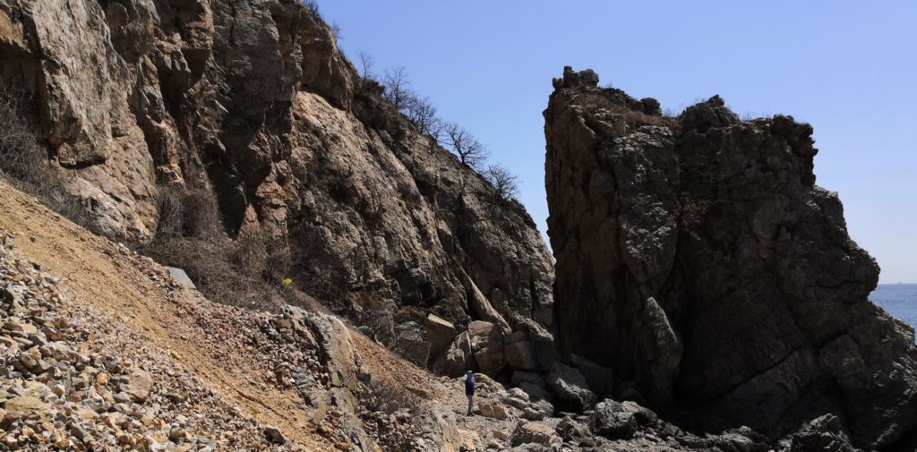 Außer verkrüppelten Kiefern, Gräsern, Felsen und Meerwasser gibt es hier nichts mehr. In der Hütte des Küstenwächters ist keiner. Die Küste ist so steil, dass wir erst einmal diskutieren, ob wir mit den Kindern die Gefahre eingehen wollen, da runterzugehen. Wir machen es trotzdem und entdecken zum Glück, dass es an der steilsten Stelle an der Seite ein Seil gibt, an dem sich herunterhangeln kann. Von den Seehunden, die eine Kollegin dort gesehen haben, sehen wir leider nichts.