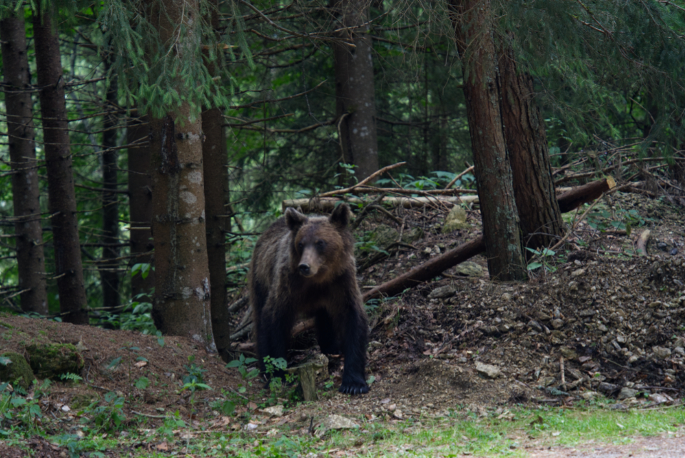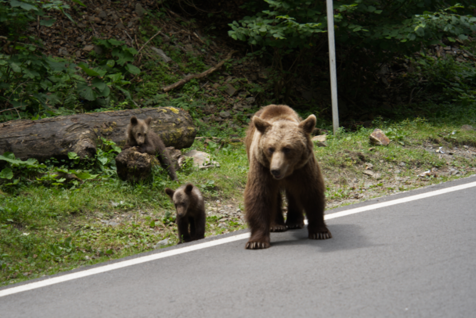 Als ich dann weiterfuhr, tauchten plötzlich an der Straße Bären auf. Auf der Straße hielten etliche Autos, um zu gucken. Ich mache ganz aufgeregt ein paar Fotos, um dann herauszufinden, dass an dieser Straße immer wieder wilde Bären warten, weil ihnen die Leute aus den Autos essen zuwerfen. Ich halte mit meinem Motorrad mehrmals an. Einmal wird ein besonders großer Bär auf mich aufmerksam, wahrscheinlich, weil ich nicht im Auto bin, sondern auf dem Motorrad und eine gelbe Regenjacke anhabe. Er kommt immer näher. Erst als er nicht mehr als zwei Meter herangekommen ist, fahre ich schnell weiter. Ein paar Tage später erfahre ich, dass ein italienischer Motorradfahrer zwei Wochen vorher von einem Bären getötet wurde.