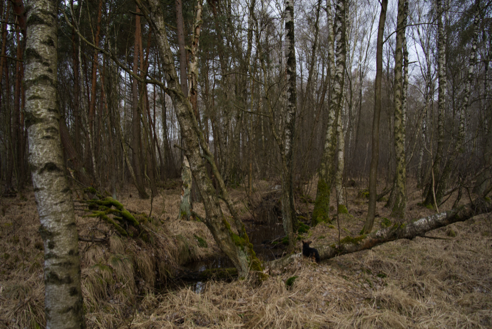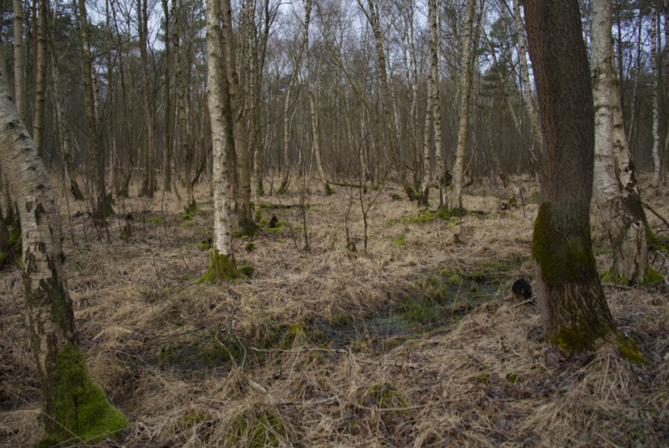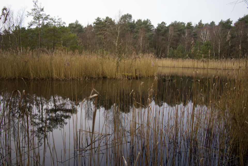 Mitten im Moor liegt ein Teich und später kommen noch diverse kleinere Fischteiche.