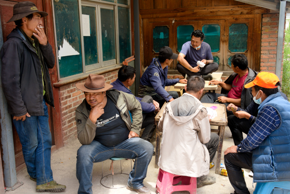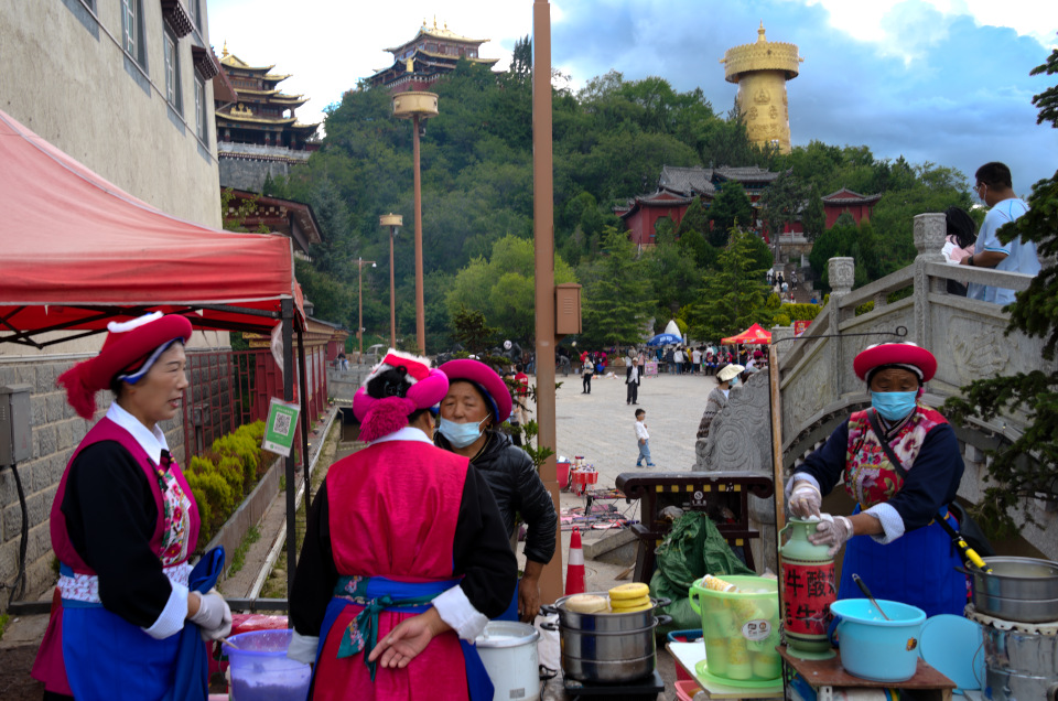 Shangrila ist der neue Name für Zhongdian, für mich bleibt es Zhongdian. Die Stadt auch sehr touristisch, vor 20 Jahren habe ich da drei chinesische Rucksacktouristen getroffen und wir haben uns gleich zusammengetan. Kommen schließlich zufällig wirklich noch an einen touristischen Ort, einen kleinen runden Teil in der Hochebene mit einer Stupa daneben. Da stehen zwei Frauen mit einem Grill und machen Kartoffeln und Eier.