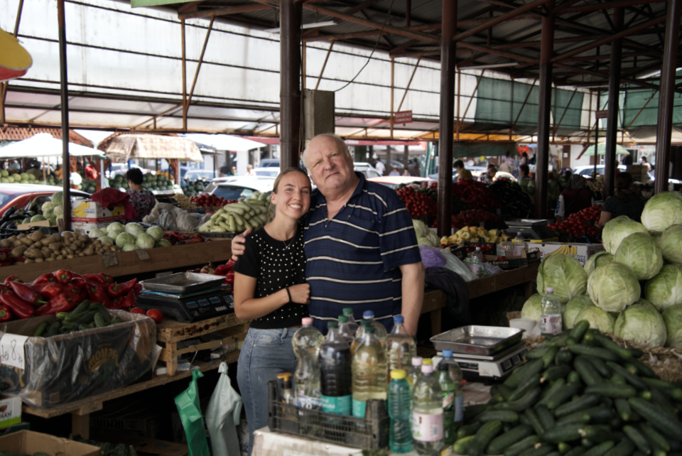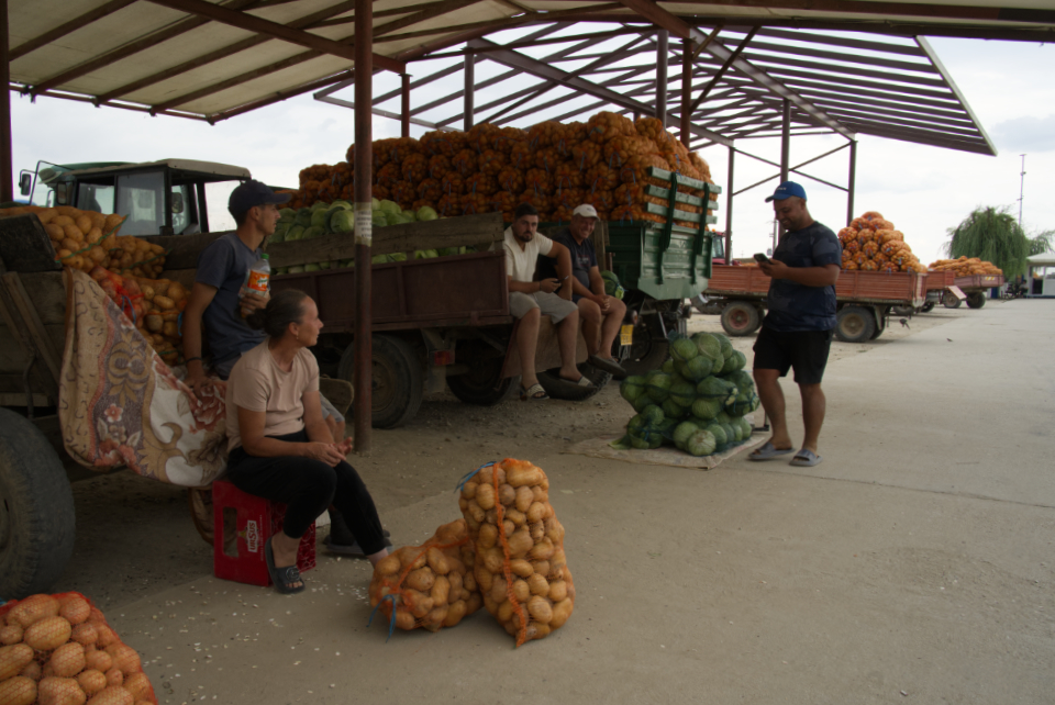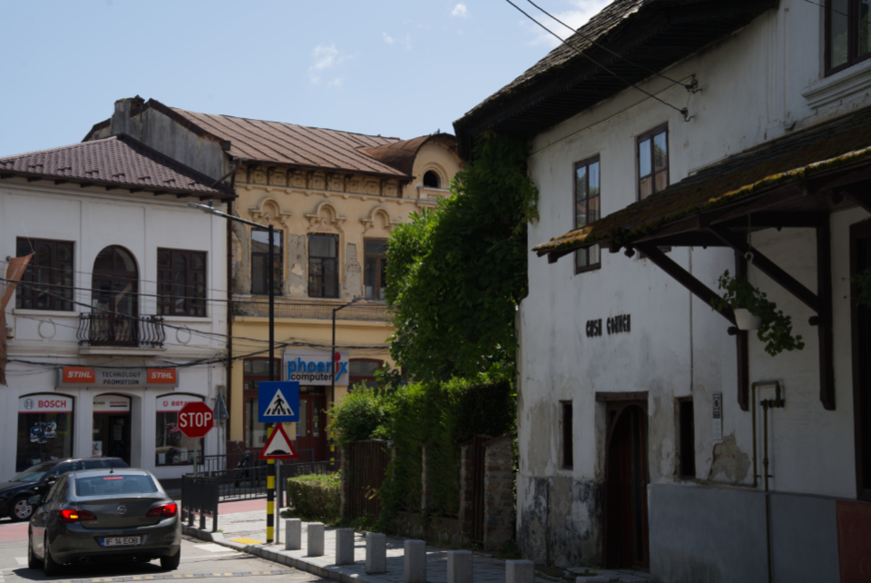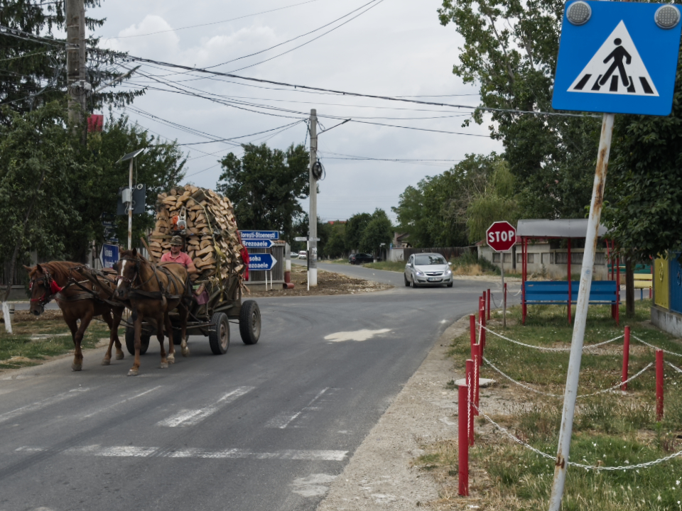 Dann gehe ich in das Wirtshaus nebenan und hole mir Mici (rumänische Cevabcici) und Pommes und esse die draußen unter einem Regenschirm. Als ich fertig gegessen habe, ist der Regen fast vorbei.
