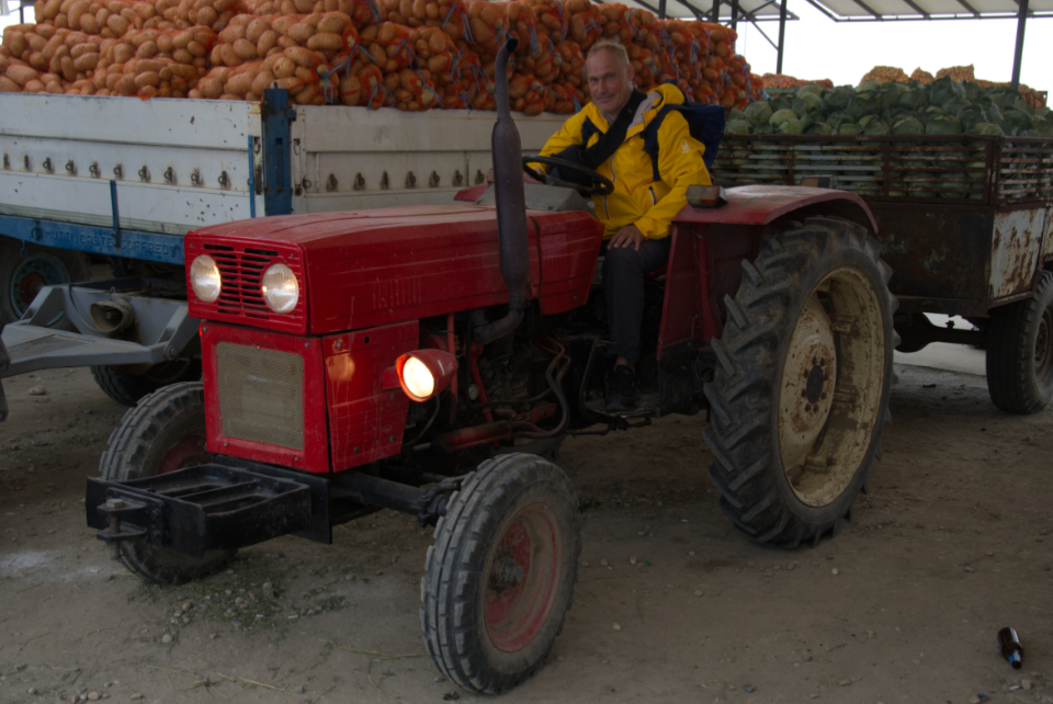Ich werde zweimal vom Regen überrascht. Beim ersten Mal gibt es gleich rechts an der Straße einen Markt für Kartoffeln und so. Ich stelle das Motorrad bei einem jungen Bauern trocken ab. Stellt sich heraus, dass der Englisch spricht.